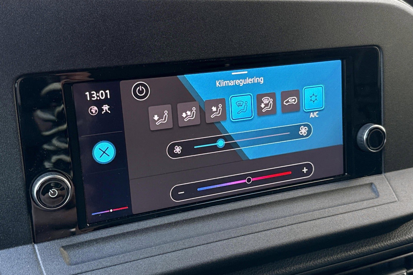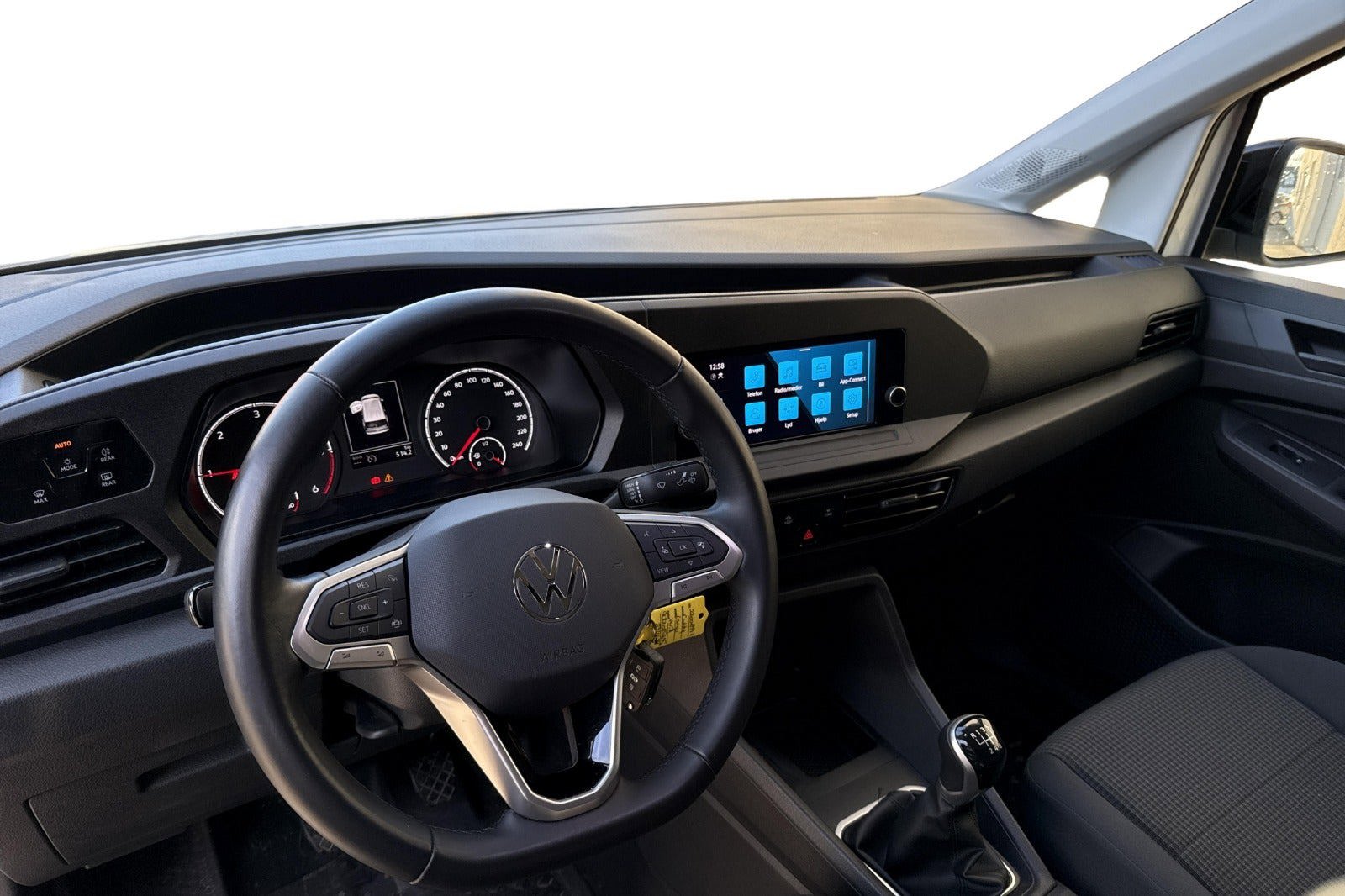 multifunktionsrat, højdejust. forsæder, stofindtræk, træk, el-sidespejle m/varme, aircondition, fjernb. centrallås, fartpilot, udv. temp. måler, apple carplay, dab radio, parkeringssensor (bag), db. airbags, esp, antispin, auto hold, indfarvet kofanger, træbund i varerum samt sidebeklædning, ekstra skydedør, VW vejhjælp |